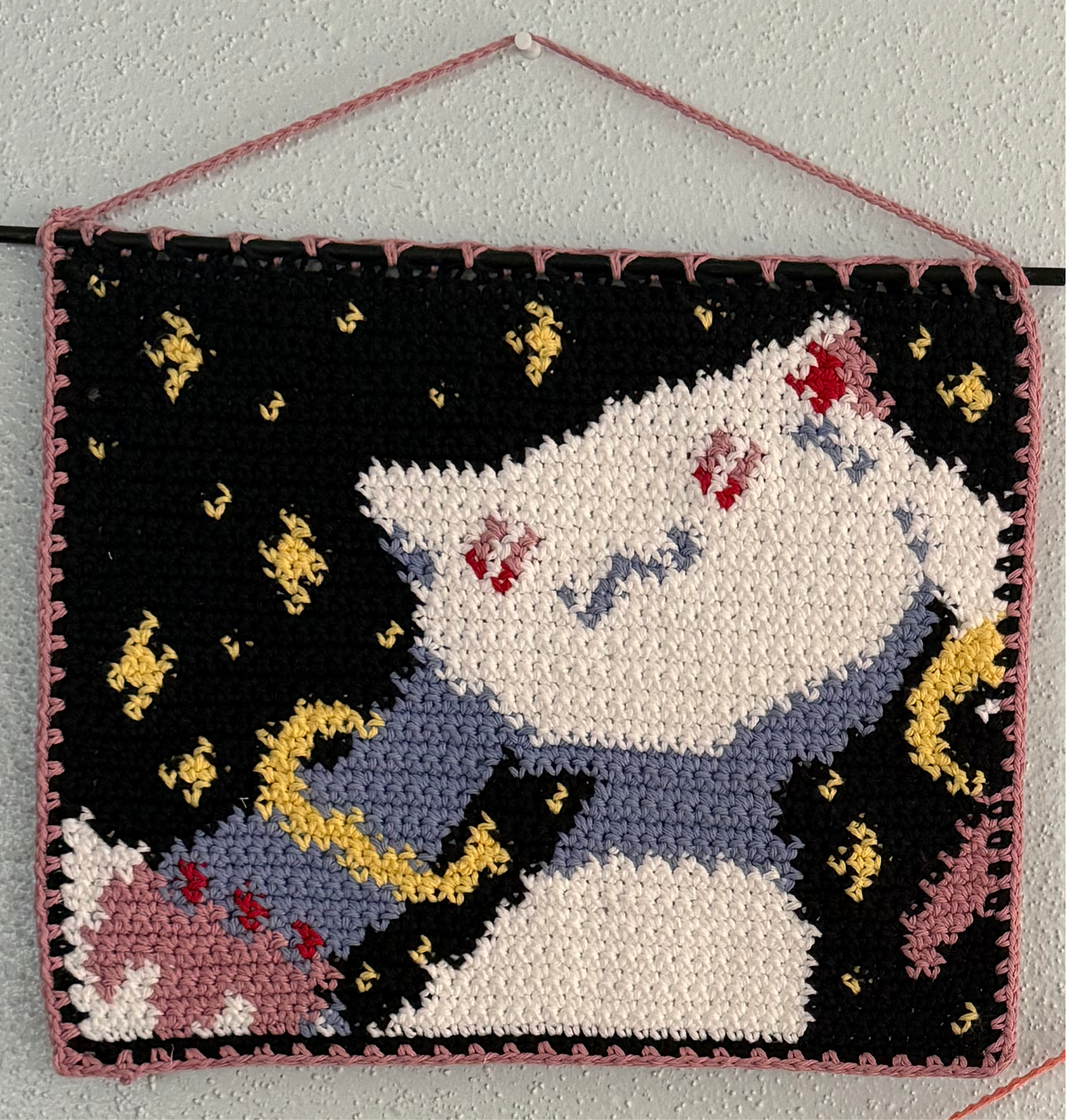 Product is 14” x 14” w/ 16” hand painted dowel rod