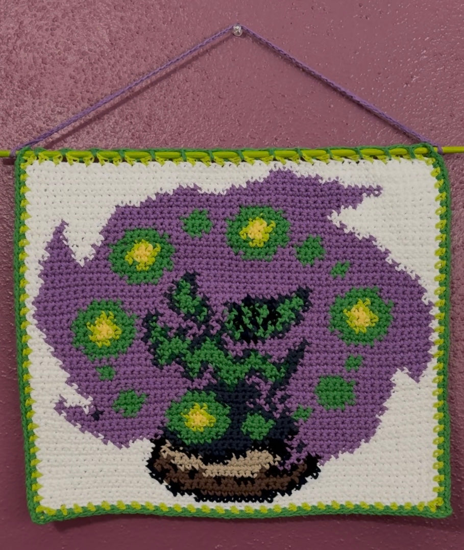 Crocheted tapestry of #442, the Ghost/Dark type.