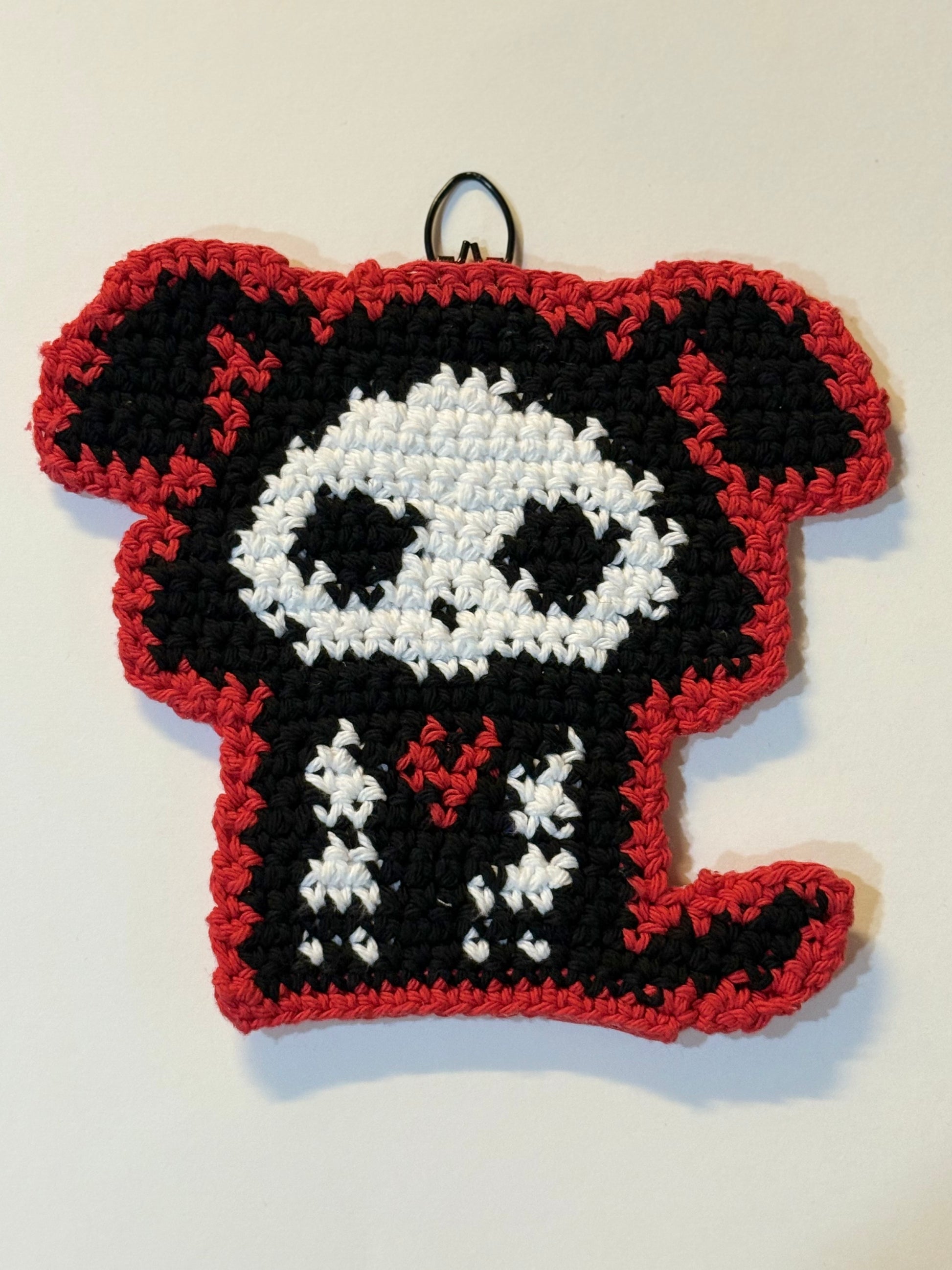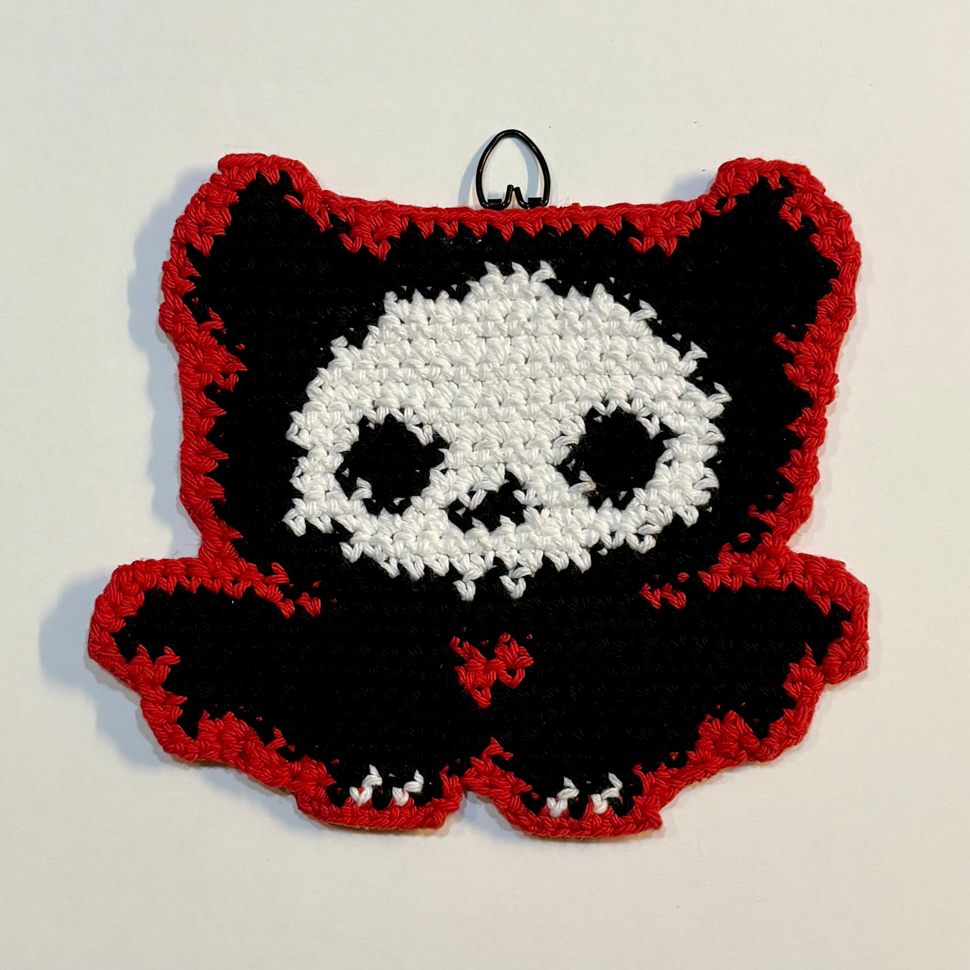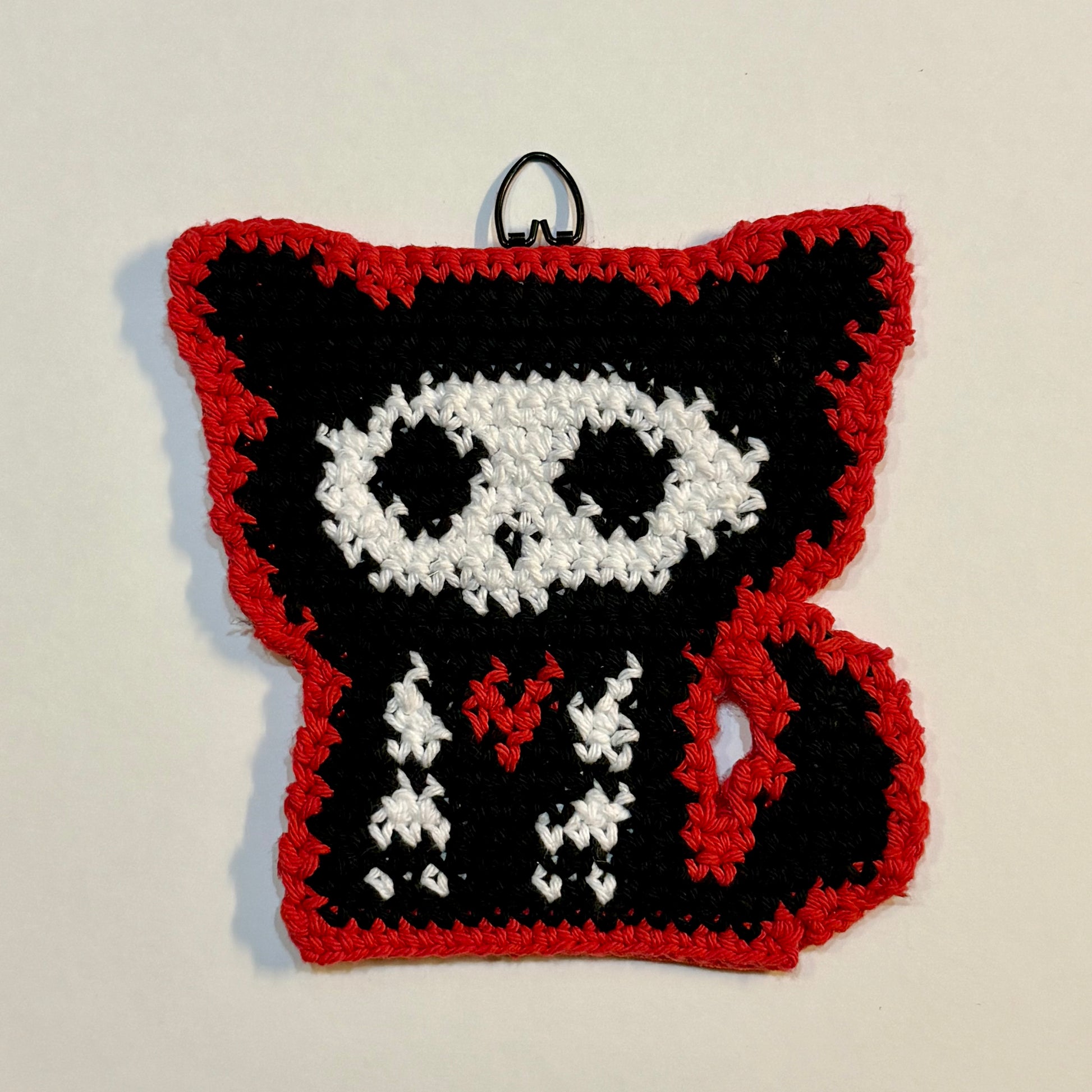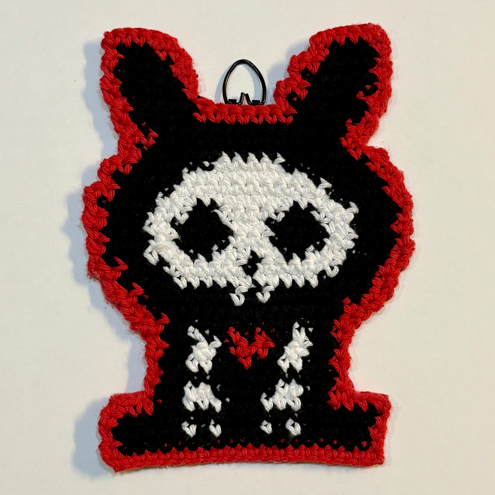 Crochet cutout wall hangings of Skeleton Animals characters.